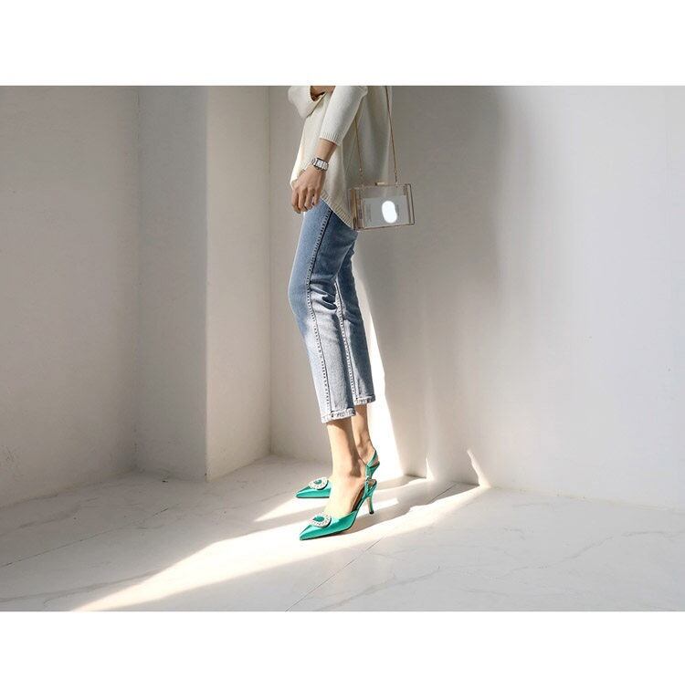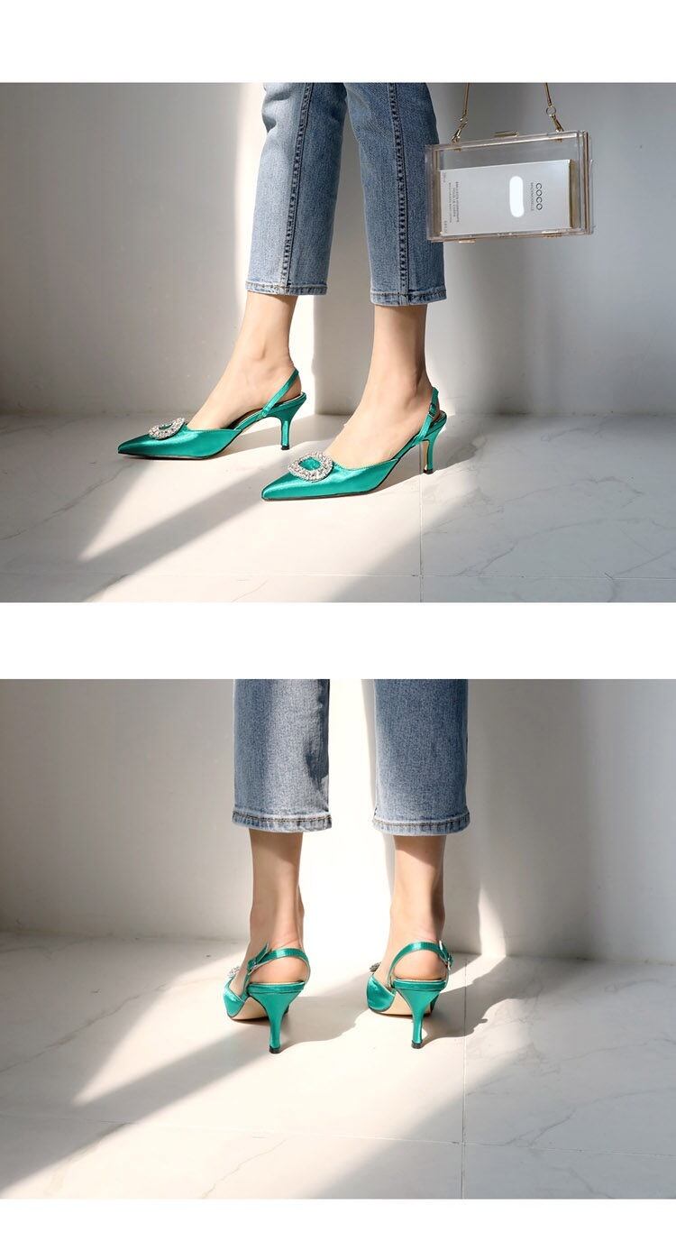 ストーンサテンバックストラップシューズ