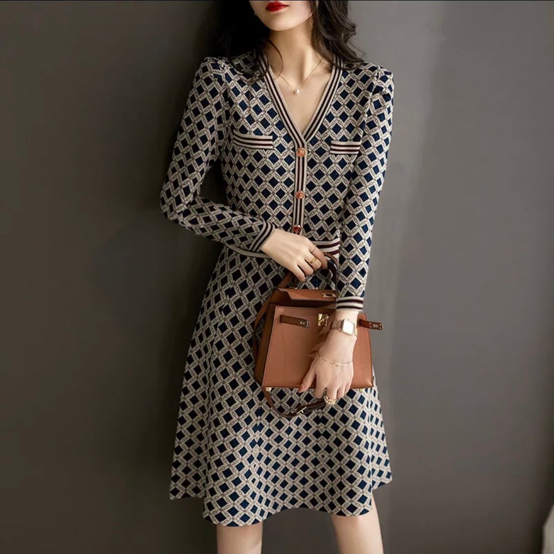 Vネックデザインワンピース